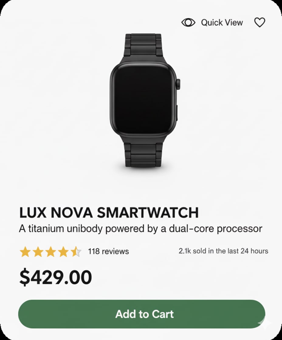 Every element is designed to push the shopper closer to “Buy Now”: clean visuals remove doubt, bold buttons grab attention, urgency badges spark FOMO, reviews and trust signals build confidence, and easy returns erase risk. Together, these micro-tweaks create a powerful subconscious nudge that turns casual browsers into loyal buyers.