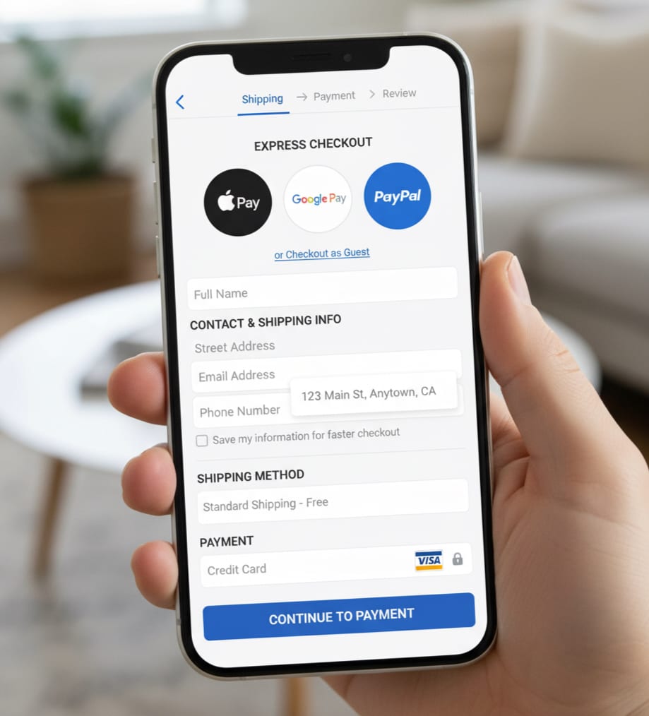 The finish line must be smooth. Every extra field, error, or uncertainty creates hesitation. The average checkout abandonment rate sits between 60-80%, largely due to overly complex flows. Automatically detect location for address fields, enable one-click payment or wallet options, and eliminate unnecessary steps like forcing account creation. Aim for fewer fields, fewer errors, and zero last-minute surprises.