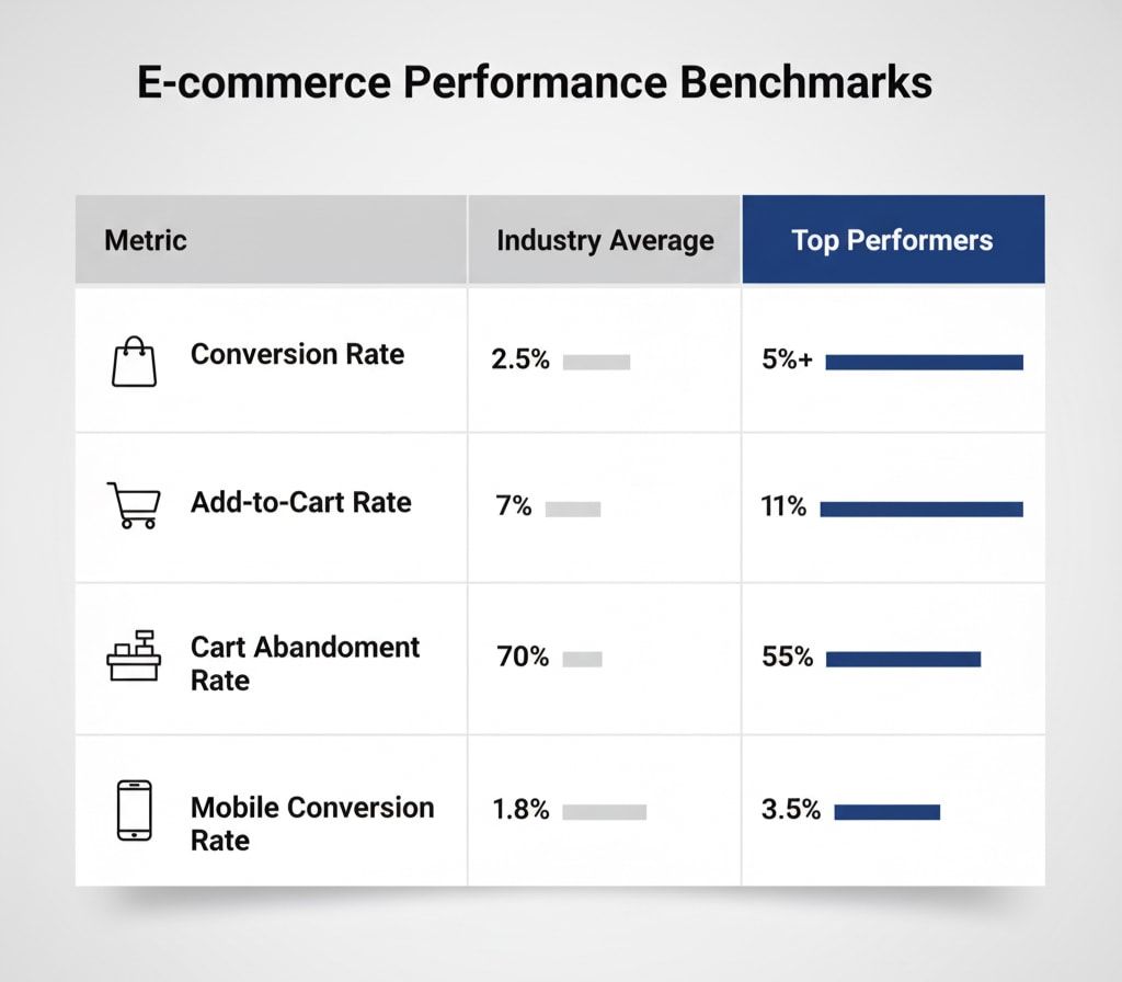 - Average add-to-cart rate: 6-7% (top performers: 9-11%)